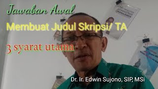 ada 3 syarat utama dalam membuat Judul Skripsi/ Tugas Akhir, yaitu: Variabel, Alat Ukur (untuk kuantitatif: pengaruh, hubungan, dll) dan Lokasi/ Locus.